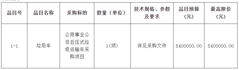 项目名称:公用事业公司后压式垃圾运输车采购项目