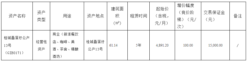 南海桂城叠滘圩公产13号(GZB0171)物业租赁项目网上交易竞投公告