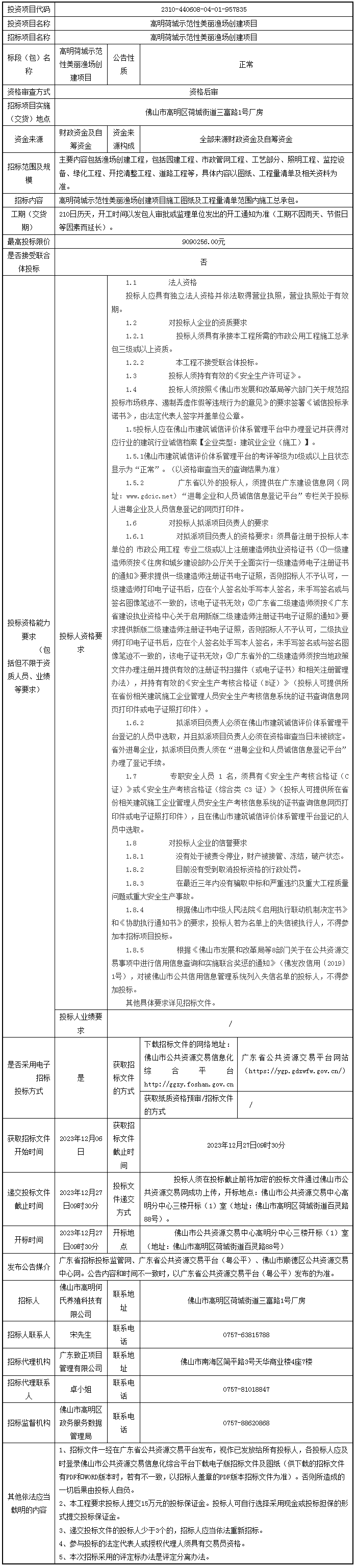 佛山市粤创招标代理有限公司(以下简称“采购代理机构”)受佛山市高明区更合农业发展有限公司(以下简称“采购人”)委托对高明区更合镇平塘陇村涌段养殖池塘标准化改造和尾水治理示范项目(项目编号:JG2023(GM)XS0018)进行竞争性磋商采购,欢迎符合资格条件的供应商投标。