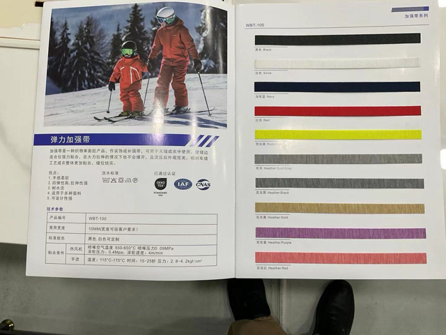 弹力加强带是一种织物单面胶产品,作装饰或补强带,用于无缝成衣中使用,使缝边连合位强力贴合,在大力拉伸的情况下也不会爆开,且烫压后外观完美,相对车缝工艺成衣整体更加贴合,缝位结实。优点是手感柔软,回弹性高,拉伸性强,.耐水洗,适用于多种面料,可设计性强。