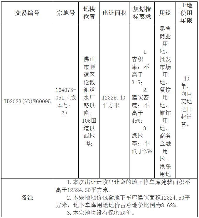 五、有意参与竞买者可于 2023 年12月12日后登录网上交易系统下载TD2023(SD)WG0095地块的《佛山市顺德区国有建设用地使用权网上挂牌出让文件》。
