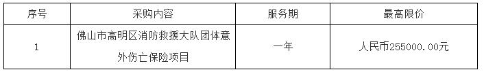 二、 采购项目名称:佛山市高明区消防救援大队团体意外伤亡保险项目