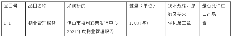 项目名称:佛山市福利彩票发行中心2024年度物业管理服务