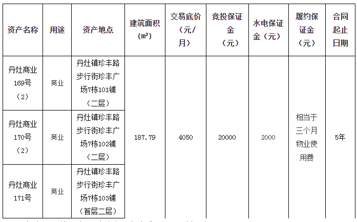 佛山市南海区丹灶镇公共资源交易所受佛山市南海丹灶资产管理有限公司的委托,现就丹灶商业171号等一批物业出租项目采用网上竞价方式进行租赁,欢迎合格的竞价意向人前来报价。
