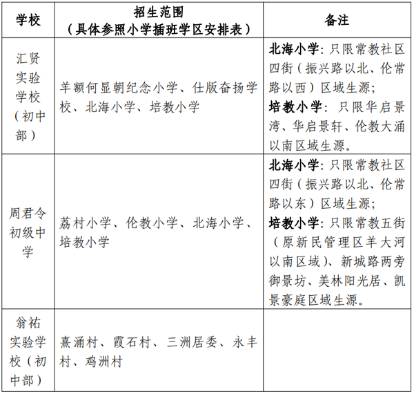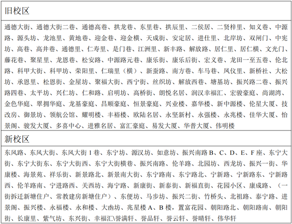 备注:大塘边、连州街、东洲街的适龄儿童,可在羊额何显朝纪念小学申请入读,也可在伦教小学新校区申请入读。