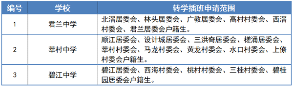 北滘镇公办中小学校原则上只接受以下两类生源的转学插班申请: