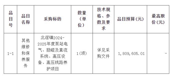 合同包1(北滘镇2024-2025年度泵站电气、励磁及直流系统、高压设备、高压线路养护项目):