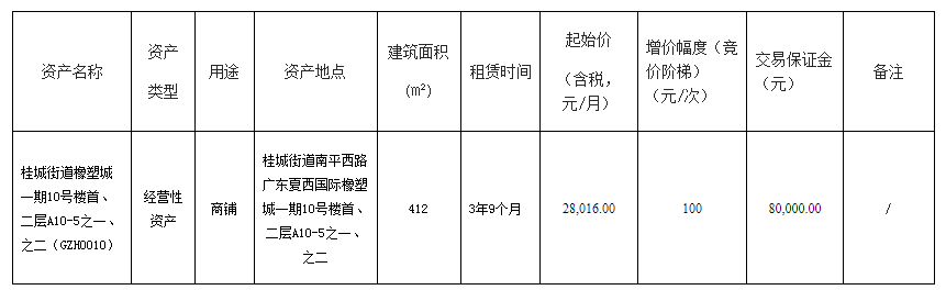 南海桂城街道橡塑城一期10号楼首、二层A10-5之一、之二(GZH0010)出租公告