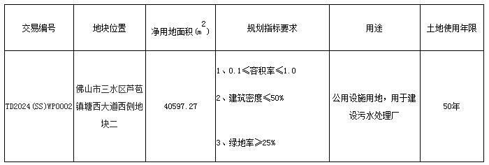 五、有意参与竞买者可于2024年1月2日后登录网上交易系统下载TD2024(SS)WP0002地块的《佛山市三水区国有建设用地使用权网上拍卖出让文件》。
