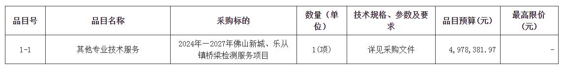 合同包1(2024 年—2027年佛山新城、乐从镇桥梁检测服务项目):