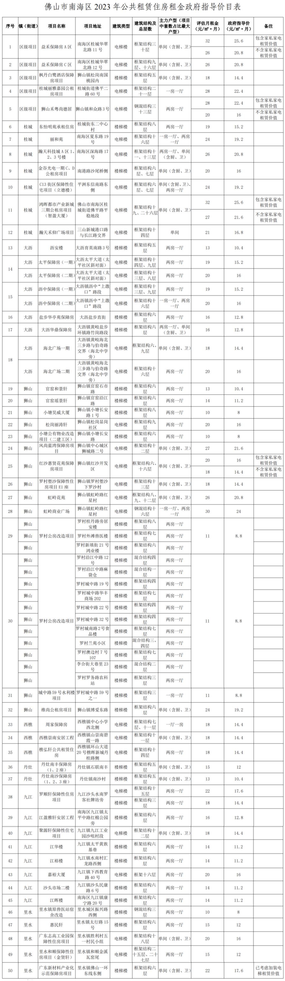 佛山市南海区住房城乡建设和水利局关于发布佛山市南海区2023年公共租赁住房租金政府指导价的通知