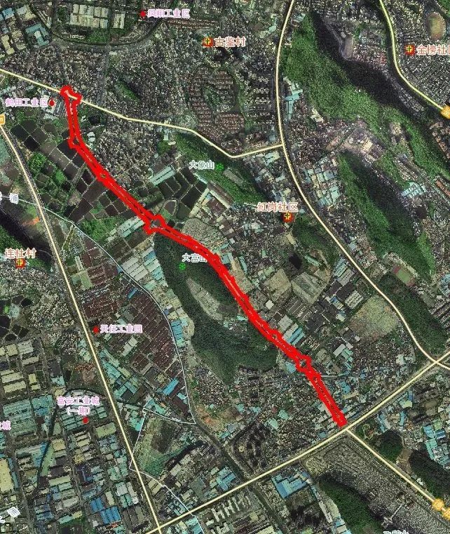该项目南起南国西路,北至良勒路,由北往南经过良勒路、大良横三路、红岗中路、展业路、南国西路,道路全场约3.03公里,采用城市主干道标准,设计速度50km/h,双向六车道,宽度为35米。