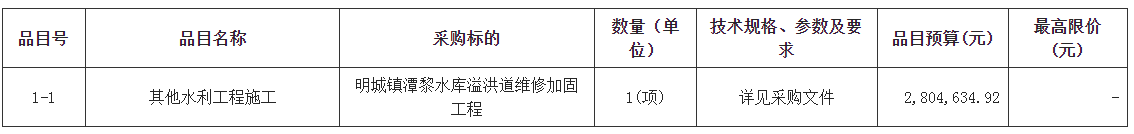 合同包1(明城镇潭黎水库溢洪道维修加固工程):