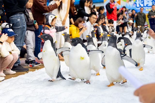 长隆企鹅酒店总经理张程介绍,长隆企鹅酒店为打造高端精品亲子酒店,“我们从游客后台留言看到,大家呼声最高是在海洋王国看不够,所以我们就把新生帝企鹅宝宝从长隆海洋王国“搬家”,让大家一起感受企鹅宝宝的魅力!此外,我们通过展出企鹅的生活习性,让更多人了解和关注企鹅的生态环境,提高环保意识。帝企鹅作为南极生态系统的明星物种,其生存状况对于整个生态系统的平衡至关重要。我们也希望通过这次活动,唤起人们对自然生态的关爱和保护环境意识。”