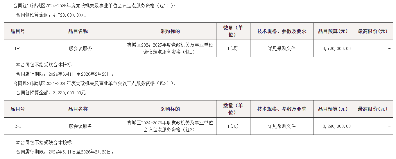 项目名称:禅城区2024-2025年度党政机关及事业单位会议定点服务资格
