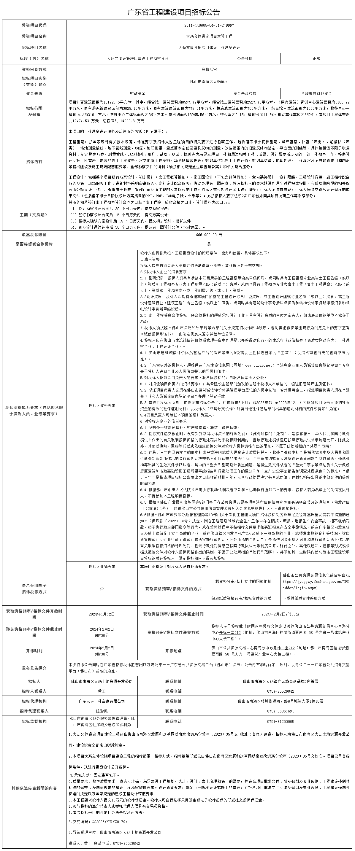 南海大沥文体设施项目建设工程勘察设计招标公告