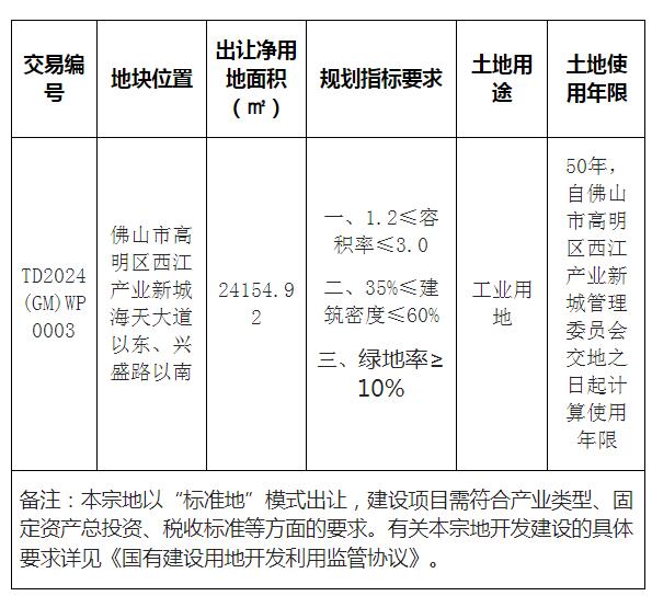 佛山市高明区西江产业新城海天大道以东、兴盛路以南网上拍卖出让