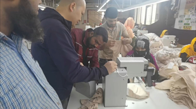 广东马牌智能科技有限公司是我国服装名牌佛山张槎的民营科技企业,专业生产无缝服装专用设备。去冬今春马牌公司先后多批次将设备发往孟加拉。该企业总经理马国富近日赴孟加拉服装厂无缝服装车间检查设备运行情况,还亲自演示操作。据了解,在中国师傅指导下,孟加拉工厂无缝服装车间领班逐渐掌握操作技术,再培训机台操作女工、新车间生产步入正轨。(黄志海)2024年元月18日