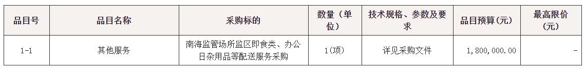 合同包1(南海监管场所监区即食类、办公日杂用品等配送服务采购):