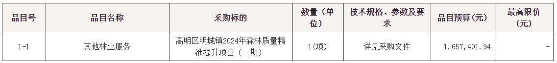 合同包1(高明区明城镇2024年森林质量精准提升项目(一期)):