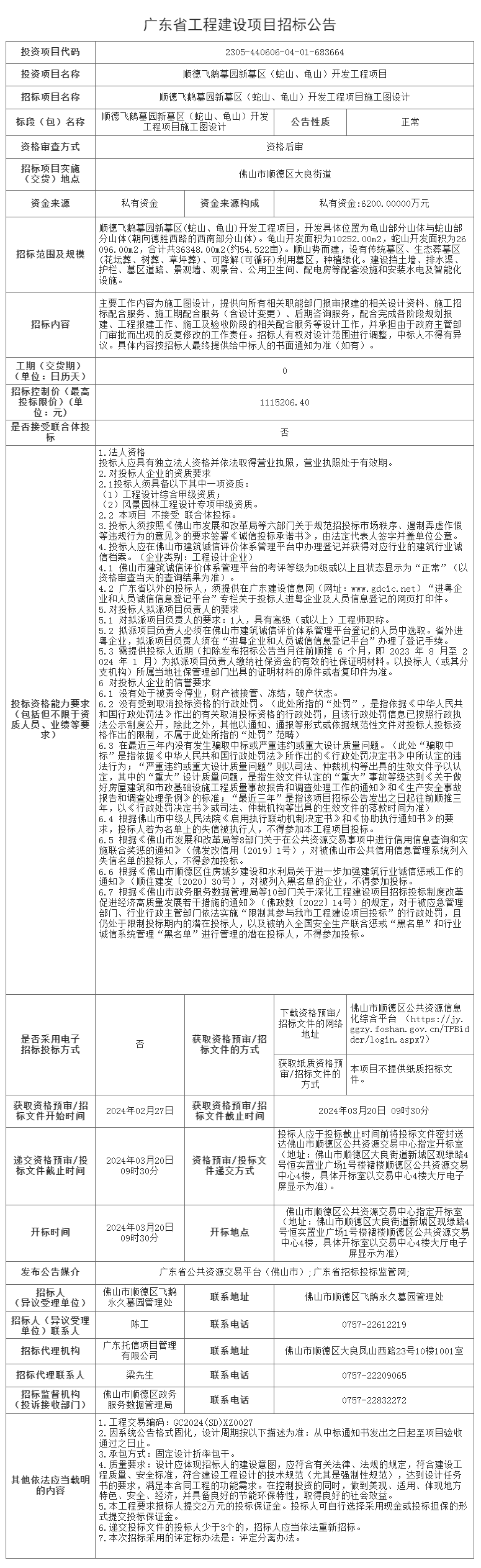 顺德飞鹅墓园新墓区(蛇山、龟山)开发工程项目施工图设计招标公告
