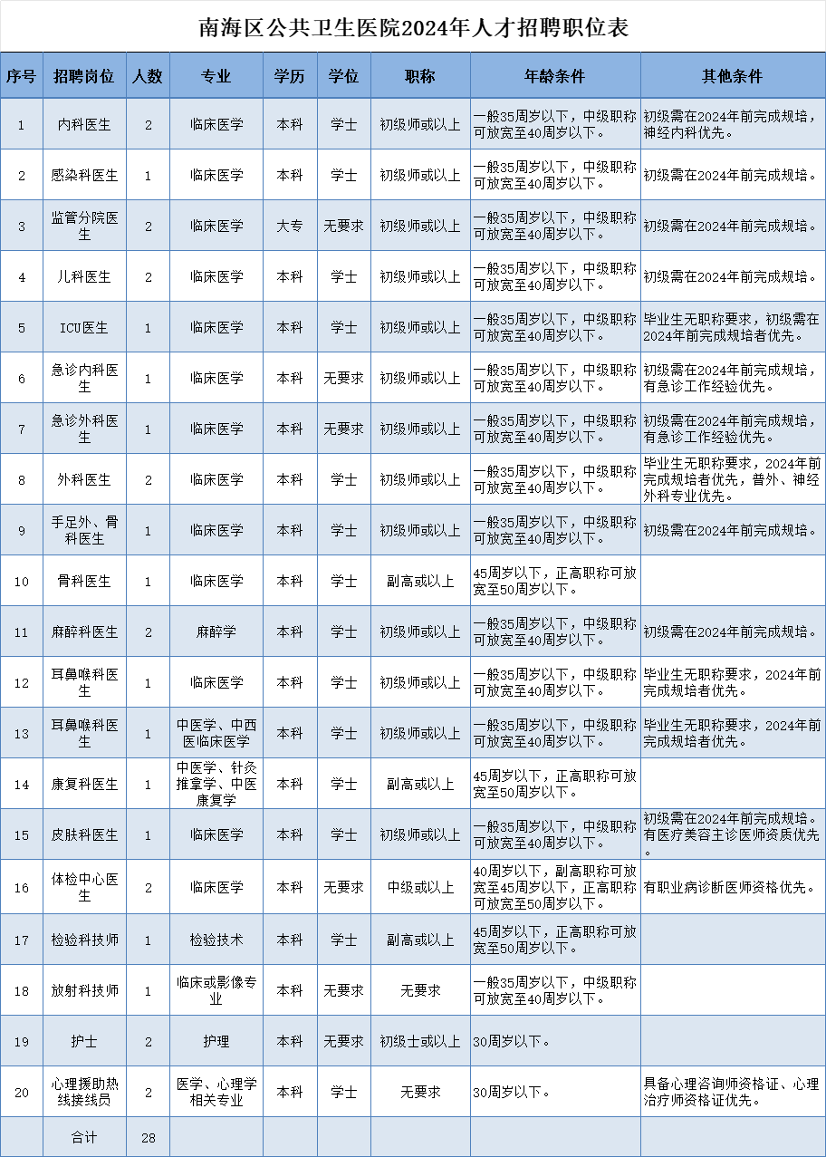 佛山市南海区公共卫生医院2024年公开招聘合同制专业技术人员公告