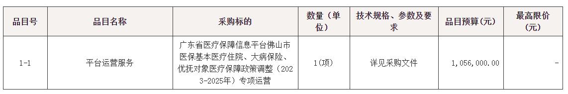 广东省医疗保障信息平台佛山市医保基本医疗住院、大病保险、优抚对象医疗保障政策调整(2023-2025年)专项运营项目采购