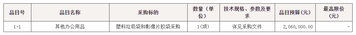 项目名称:塑料垃圾袋和影像片胶袋采购