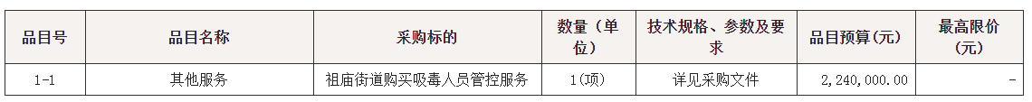 项目名称:祖庙街道购买吸毒人员管控服务项目