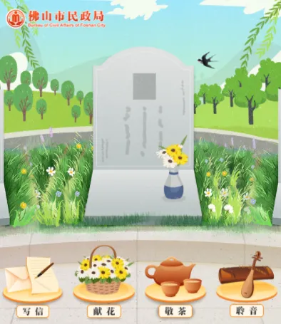 您可选择为故人写一封信、献一束花、敬一杯茶、放一段音乐进行文明祭扫,寄托哀思。