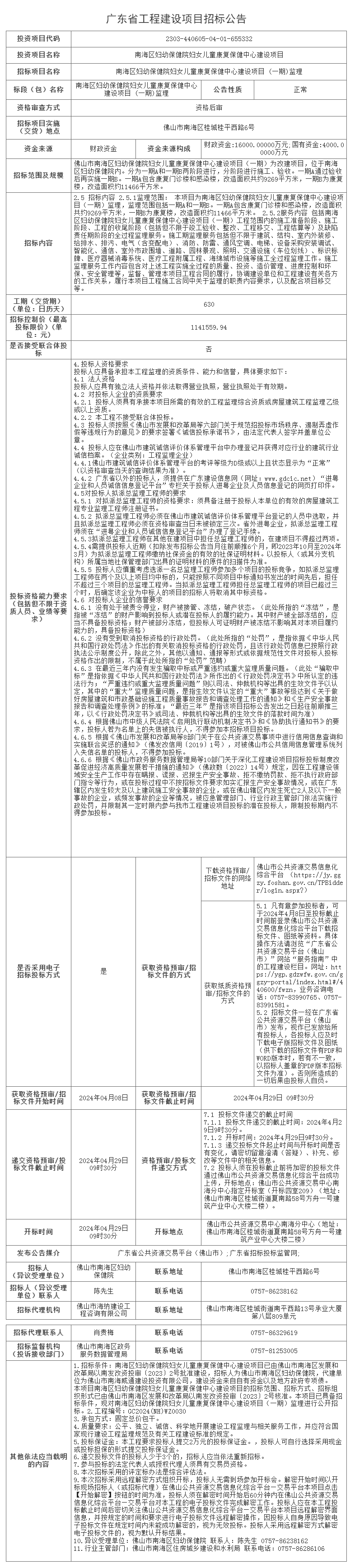 南海区妇幼保健院妇女儿童康复保健中心建设项目 (一期)监理招标公告