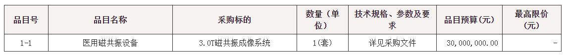 项目名称:广东省人民医院南海医院(平洲医院)心血管病大楼建设项目-2023年度购置部分医疗设备项目-3.0T磁共振成像系统