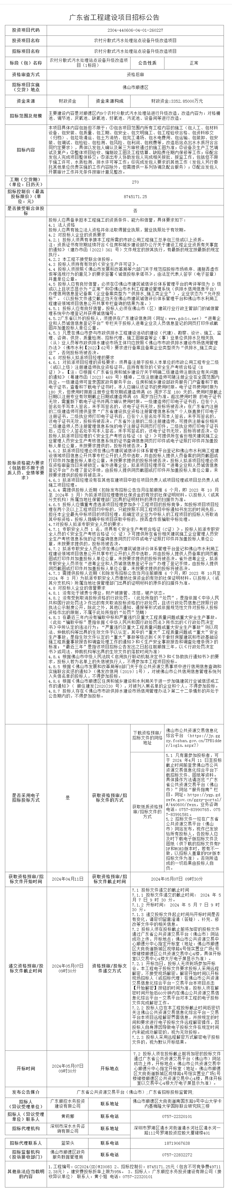 佛山顺德农村分散式污水处理站点设备升级改造项目(2标段)招标公告