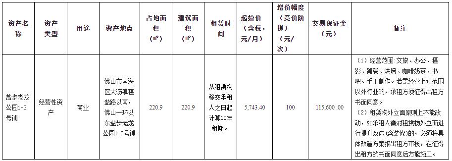 南海大沥镇盐步老龙公园1-3号铺租赁公告