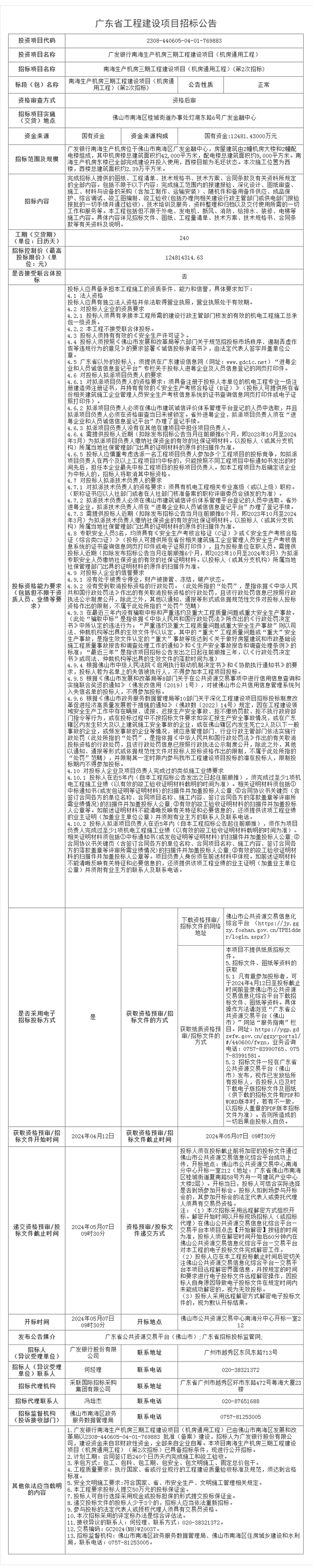 南海生产机房三期工程建设项目(机房通用工程)(第2次招标)招标公告