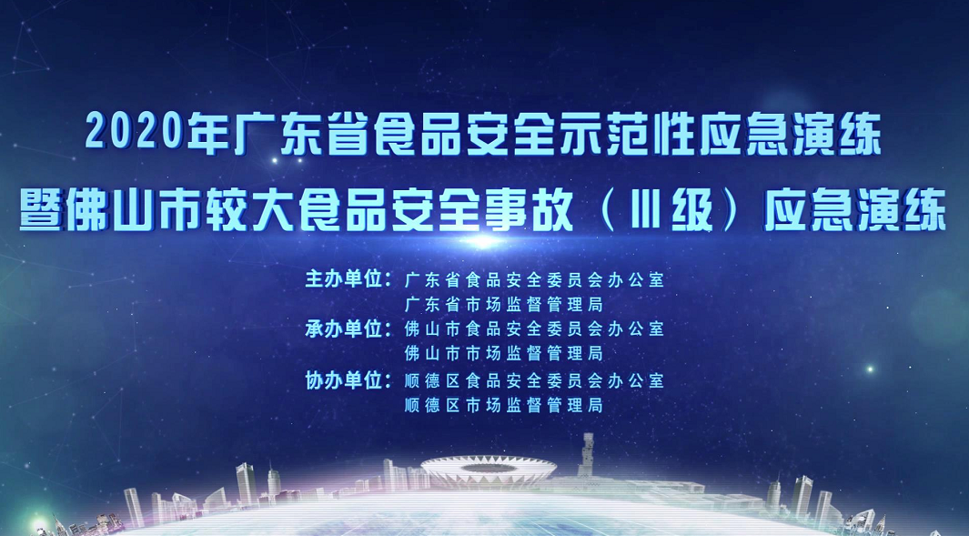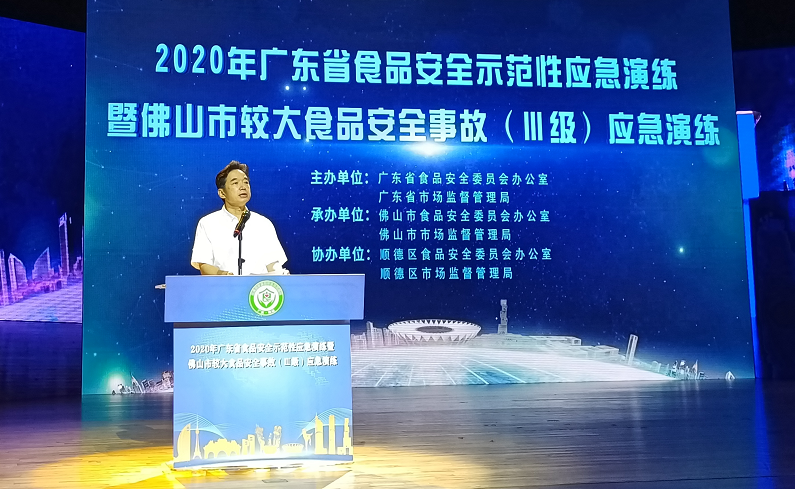 此次食品安全示范性应急演练由广东省食品安全委员会办公室、广东省市场监督管理局主办,佛山市食品安全委员会办公室、佛山市市场监督管理局承办。