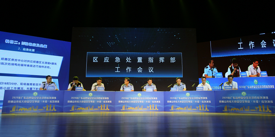 9月4日上午,2020年广东省食品安全示范性应急演练暨佛山市较大食品安全事故(Ⅲ级)应急演练在佛山市顺德区容桂文化艺术中心大剧院举行