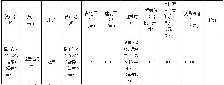 南海大沥镇横江市区大街16号(自编:盐公房564号)租赁公告