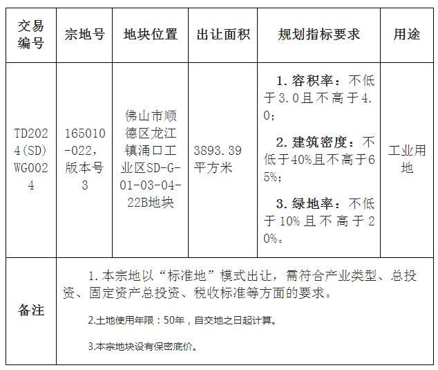五、有意参与竞买者可于2024年4月22日后登录网上交易系统下载TD2024(SD)WG0024地块的《佛山市顺德区国有建设用地使用权网上挂牌出让文件》。