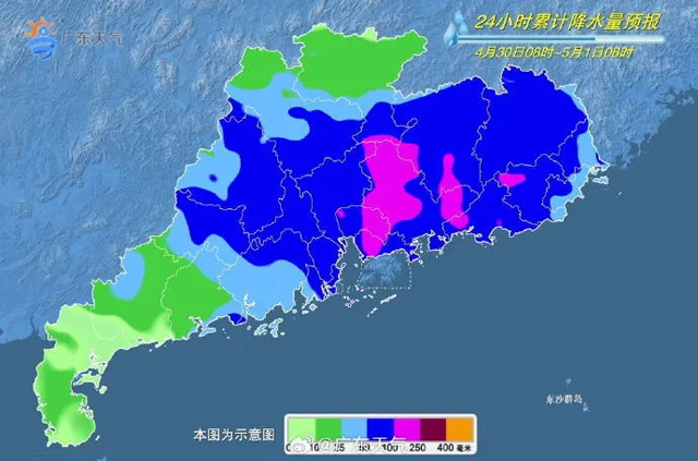 据广东气象台预测,4月29日午后-30日受高空槽、冷空气、切变线影响,我省自北向南又有一次暴雨局部大暴雨过程。