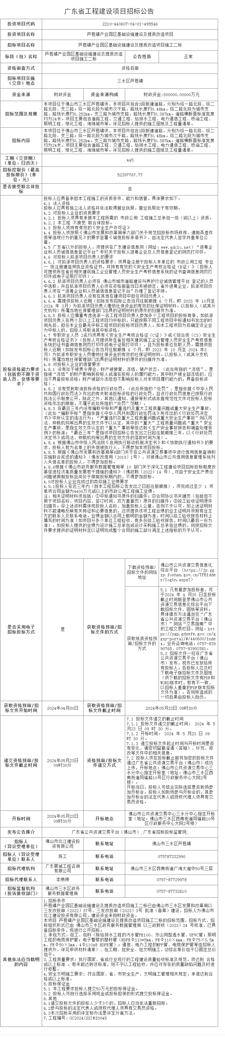 三水芦苞镇产业园区基础设施建设及提质改造项目施工四标招标公告