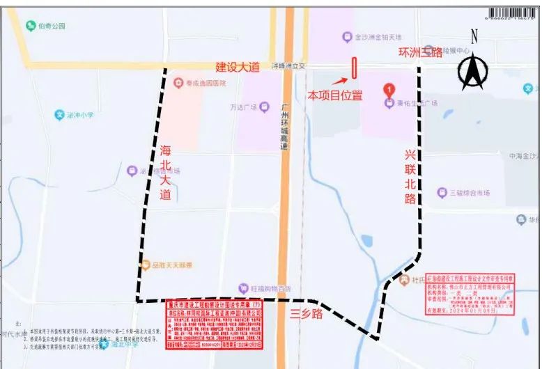 4.环洲三路北往建设大道方向过境车辆请绕行:兴联北路—三乡路—海北大道。