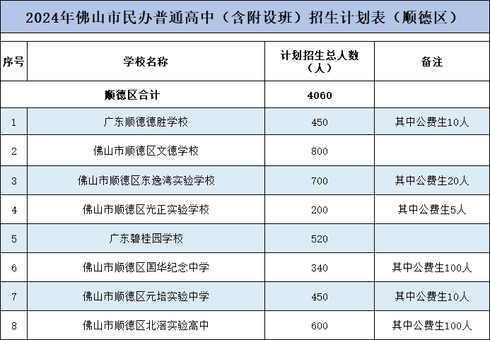 2024年佛山市初中学业水平考试报考人数约8.5万人,全市高中阶段学校招生总计划约8.7万人(不含省属、外市中职学校面向佛山市招生数),招生计划超过报考人数,满足初中学生的升学需求。请各位考生、家长结合自身情况及升学意愿,合理填报志愿。