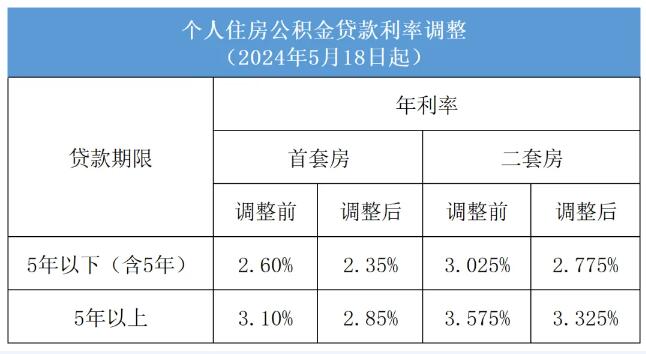 其中,5年以下(含5年)首套个人住房公积金贷款利率由2.6%下调至2.35%,5年以上首套个人住房公积金贷款利率由3.1%下调至2.85%。