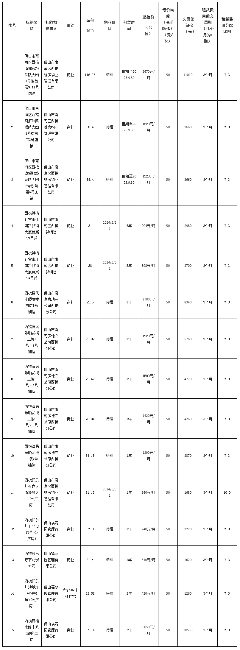 西樵镇公有物业招租(2024年第11期)竞租公告