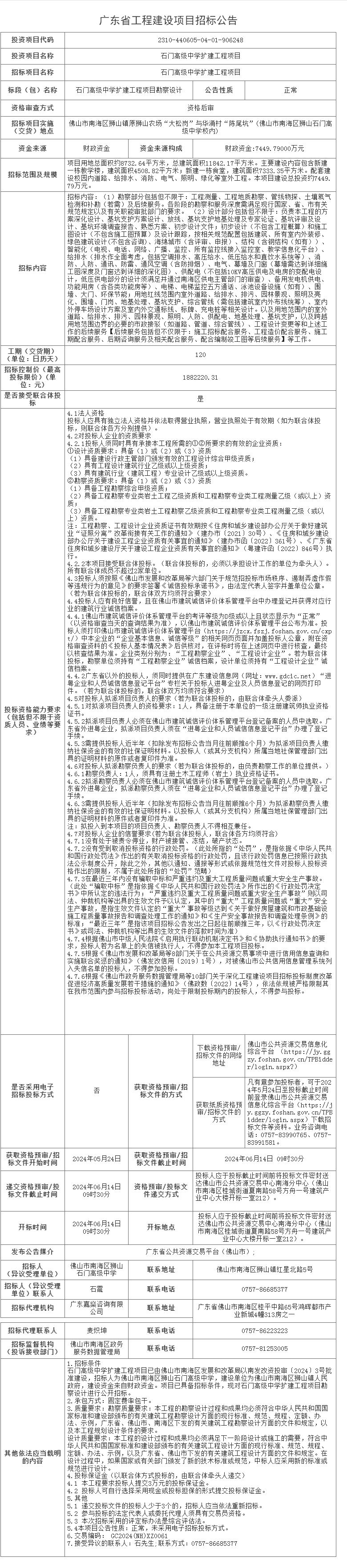 时间:2024-05-25 人气:2298 来源:佛山市公共资源交易信息化综合平台 作者: