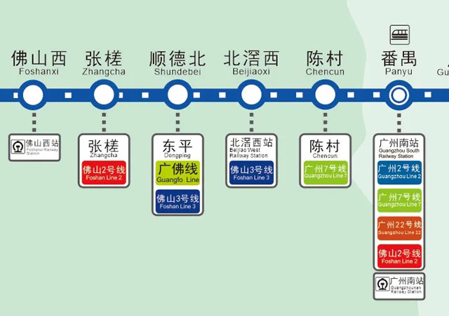 距离城际顺德北站最近的地铁出口为广佛线和佛山地铁3号线东平站E出口,乘客在E口无需出站即可通过换乘通道前往城际顺德北站。