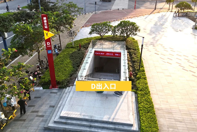 城际顺德北站位于佛山新城,开通后目前开放C、D、E三个出入口。
