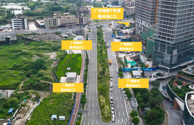 乘客可在地铁陈村站C口或无障碍电梯出口出站换乘前往城际陈村站。