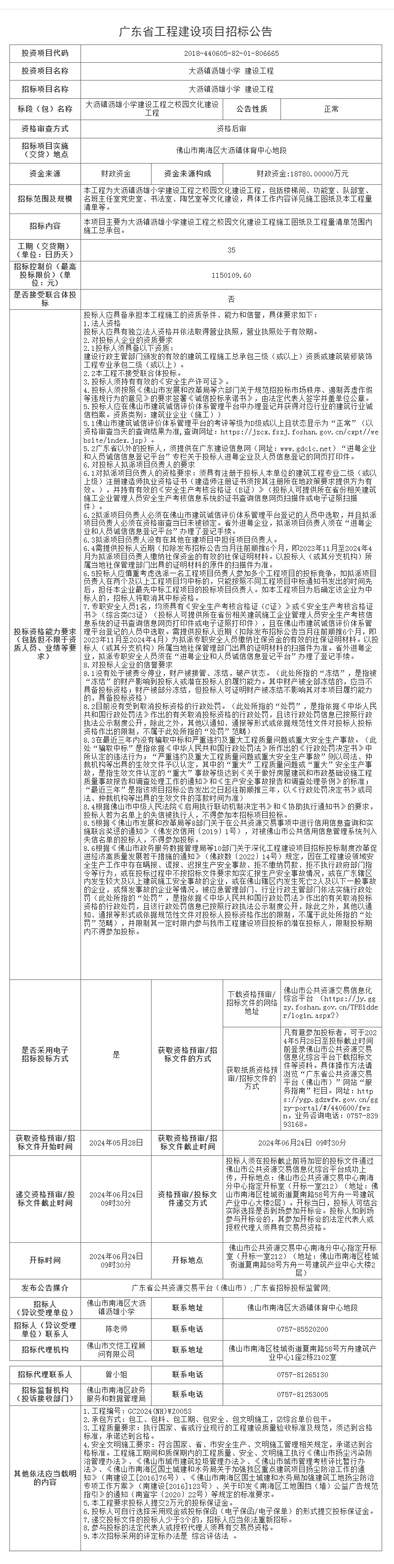 南海大沥镇沥雄小学建设工程之校园文化建设工程招标公告
